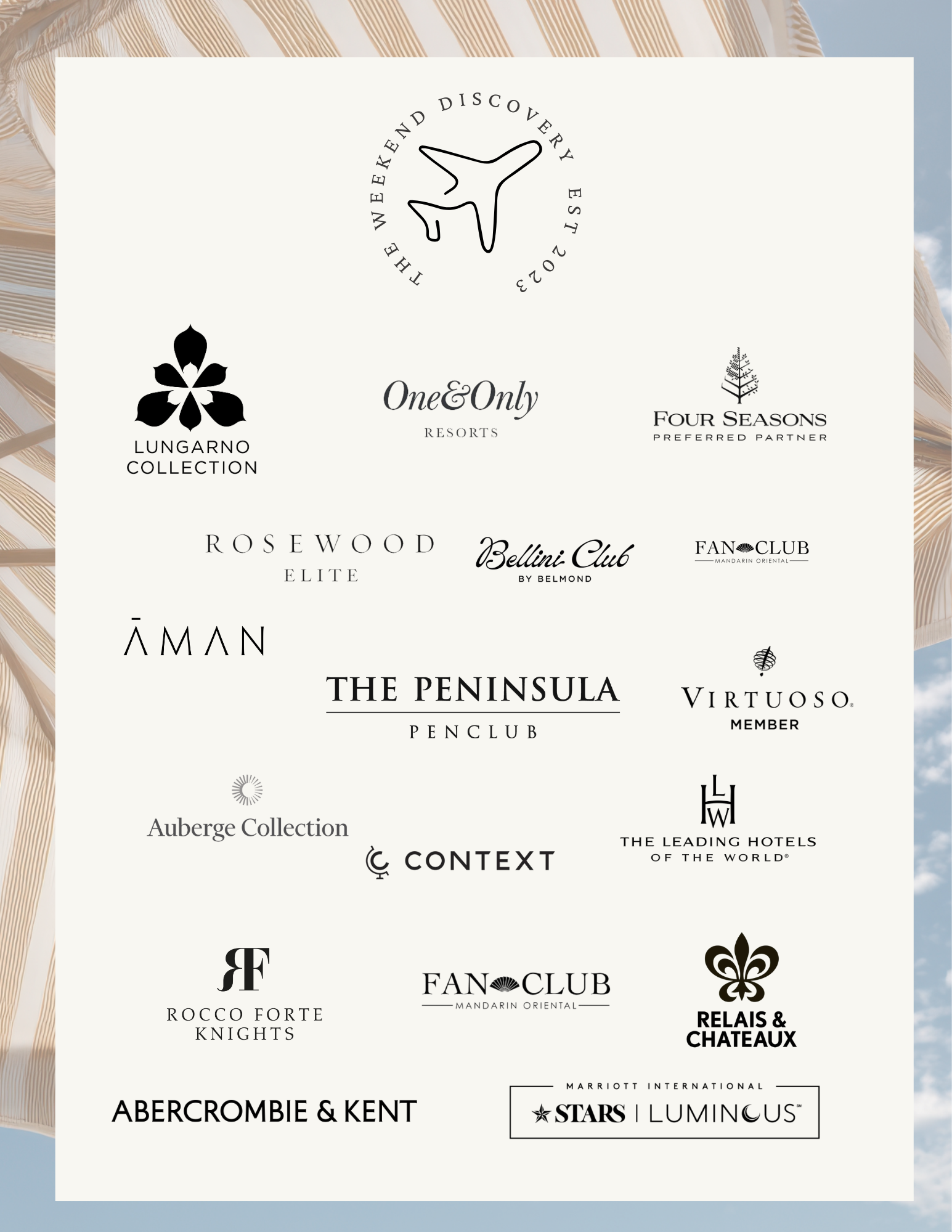 The Weekend Discovery works closely with a trusted network of hotel partners, destination experts, and global travel brands to deliver a more elevated travel experience. These relationships allow us to offer preferred perks at many 4- and 5-star hotels, along with thoughtful details that enhance your stay from the moment you arrive.